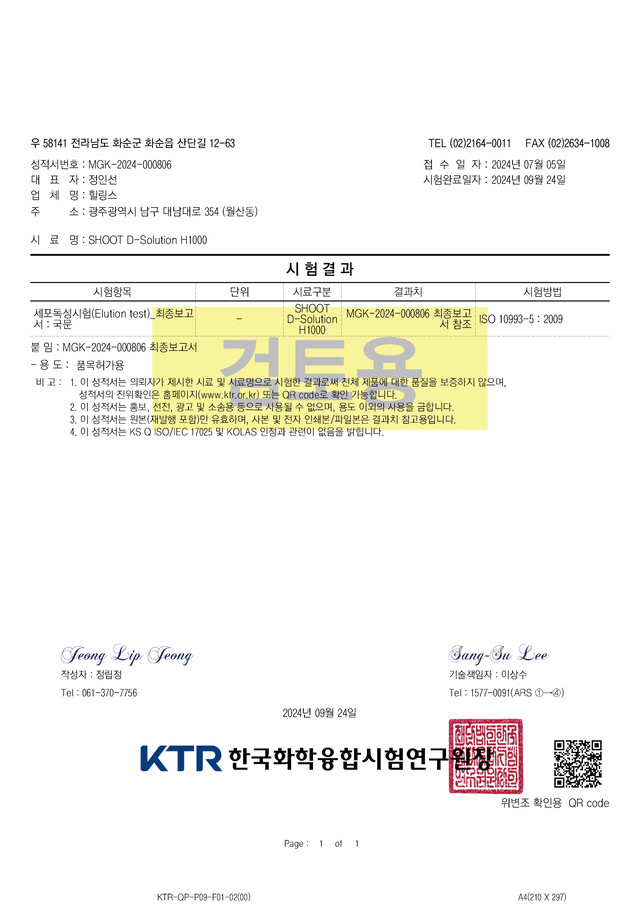 한국화학융합시험연구원 (OOO 연구원 / 062-123-1234 / mail@mail.com)